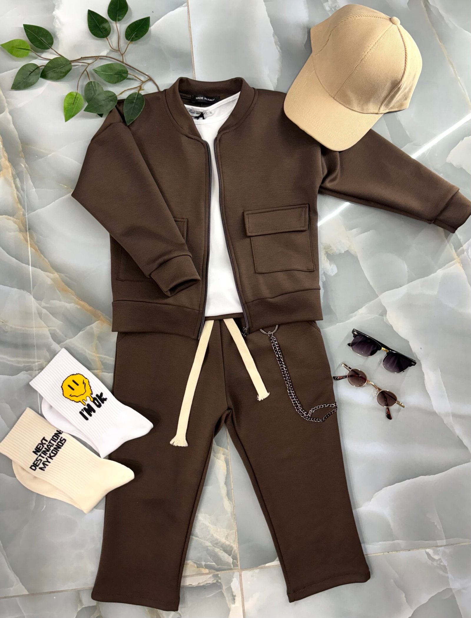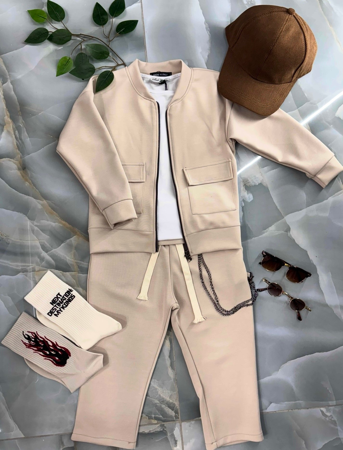 CORDINATO bimbo composto da giacca e pantalone con elastico in vita e catena
