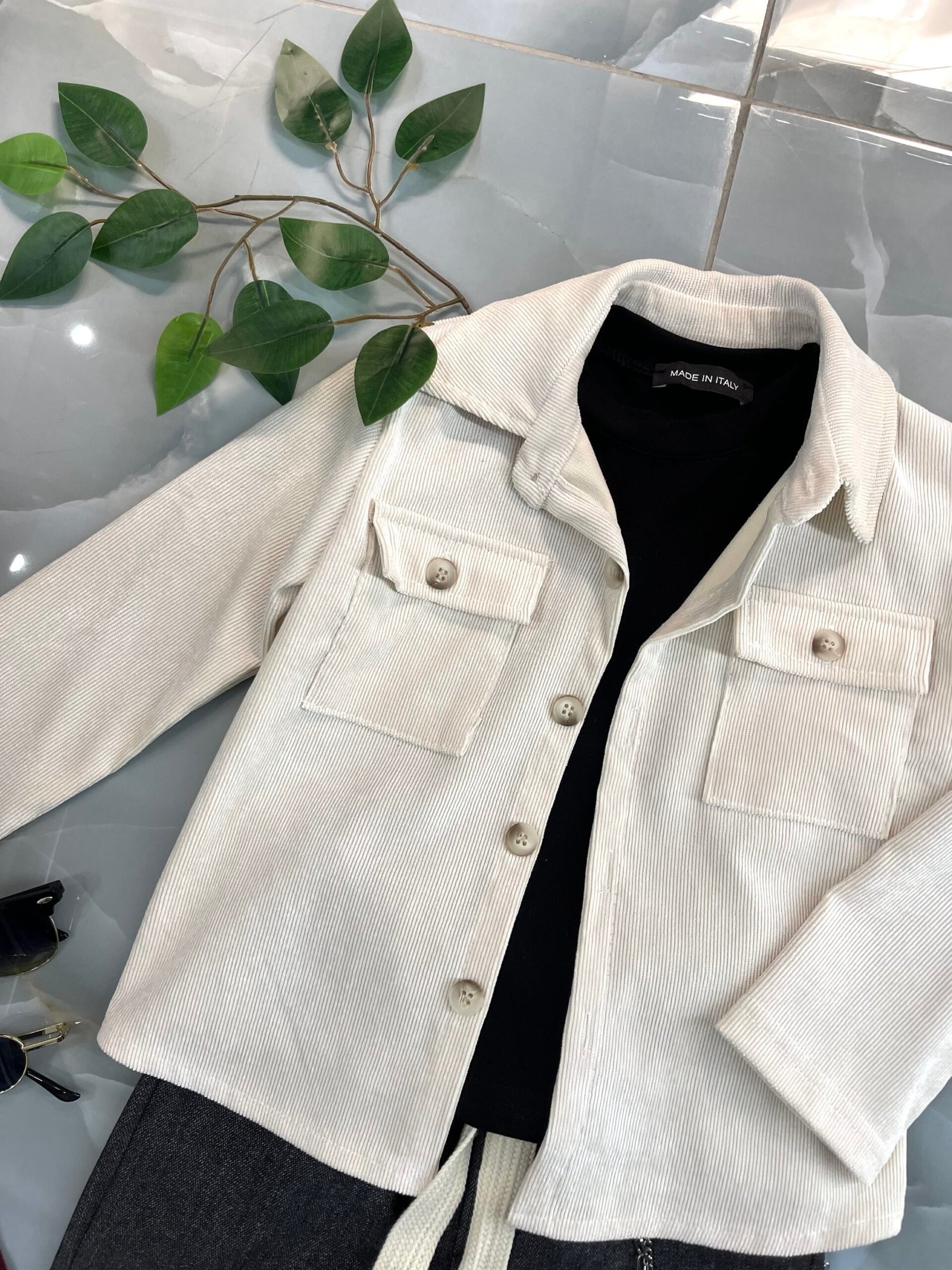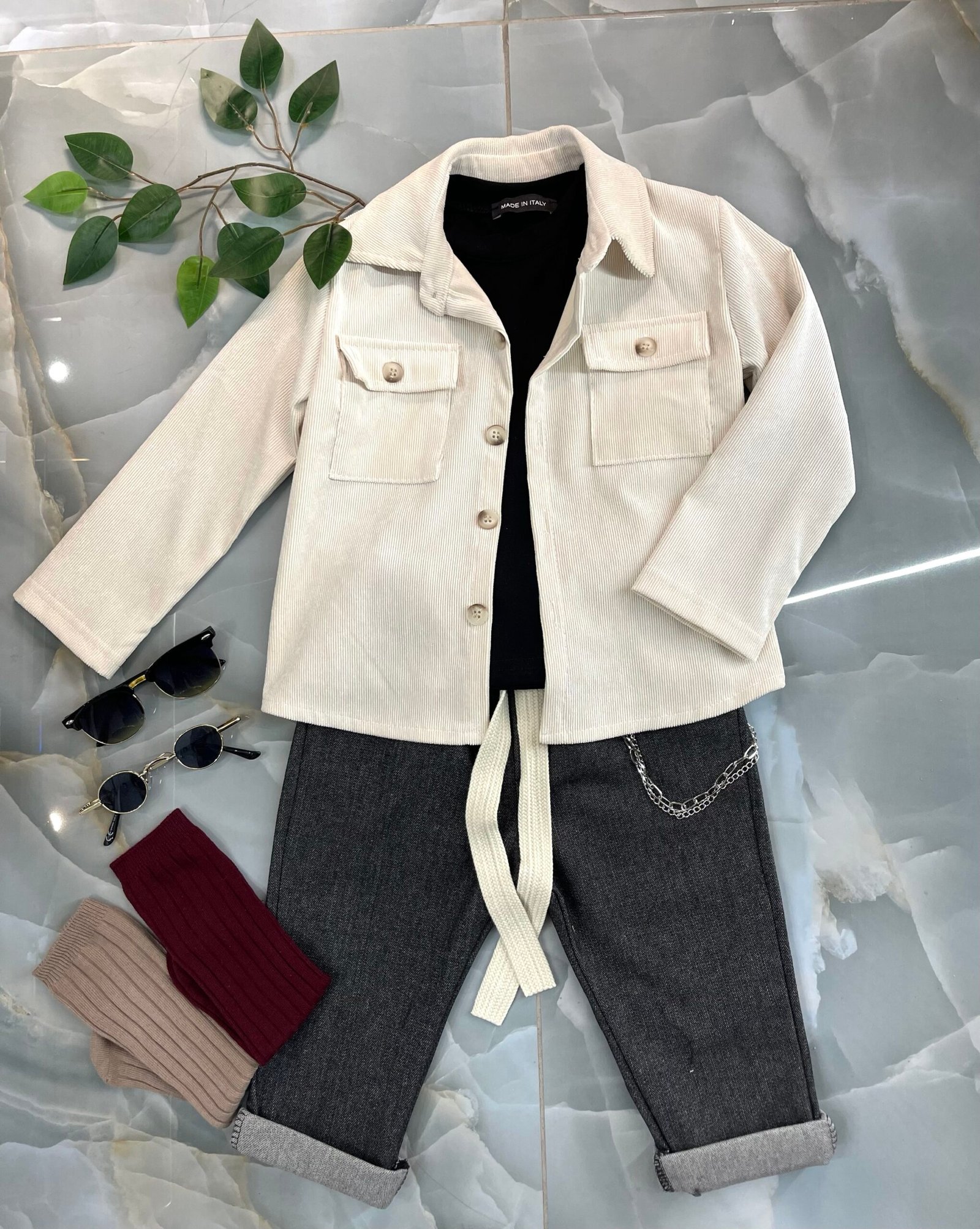 Cordinato composta da pantalone camicia in velluto e t-shirt a manica lunga in cotone caldo