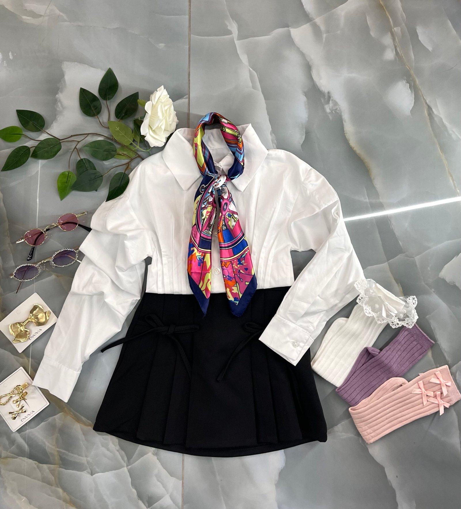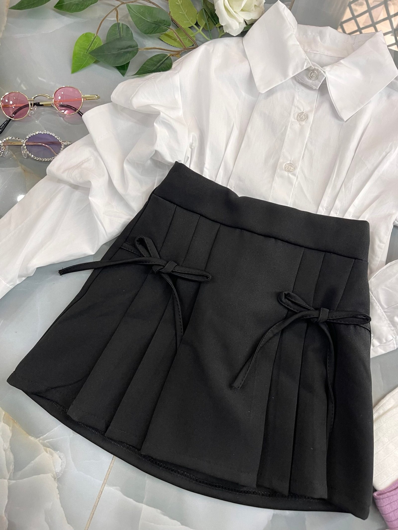 Gonna in tessuto con fiocchi su davanti