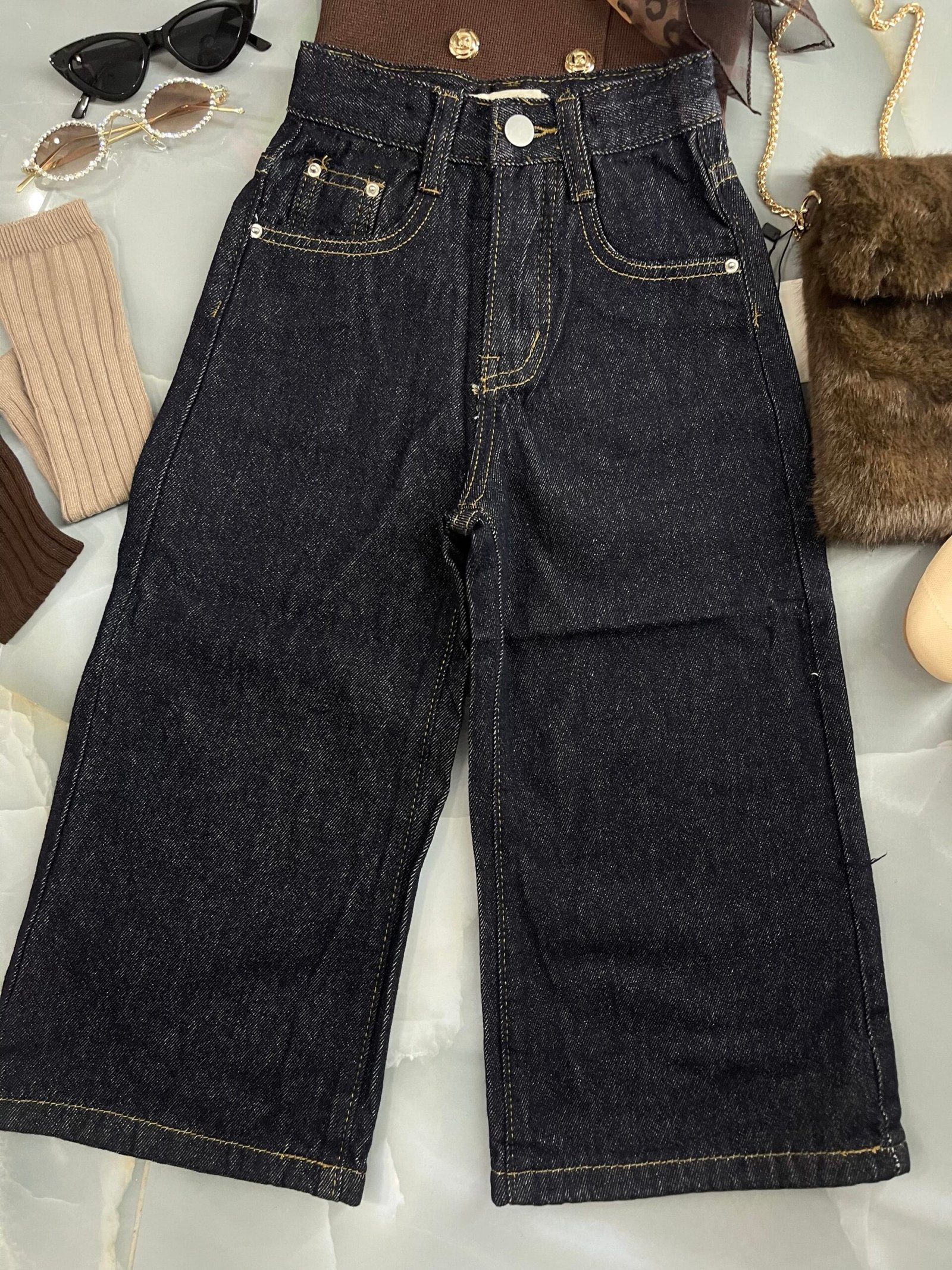 Jeans lavaggio scuro a gamba larga
