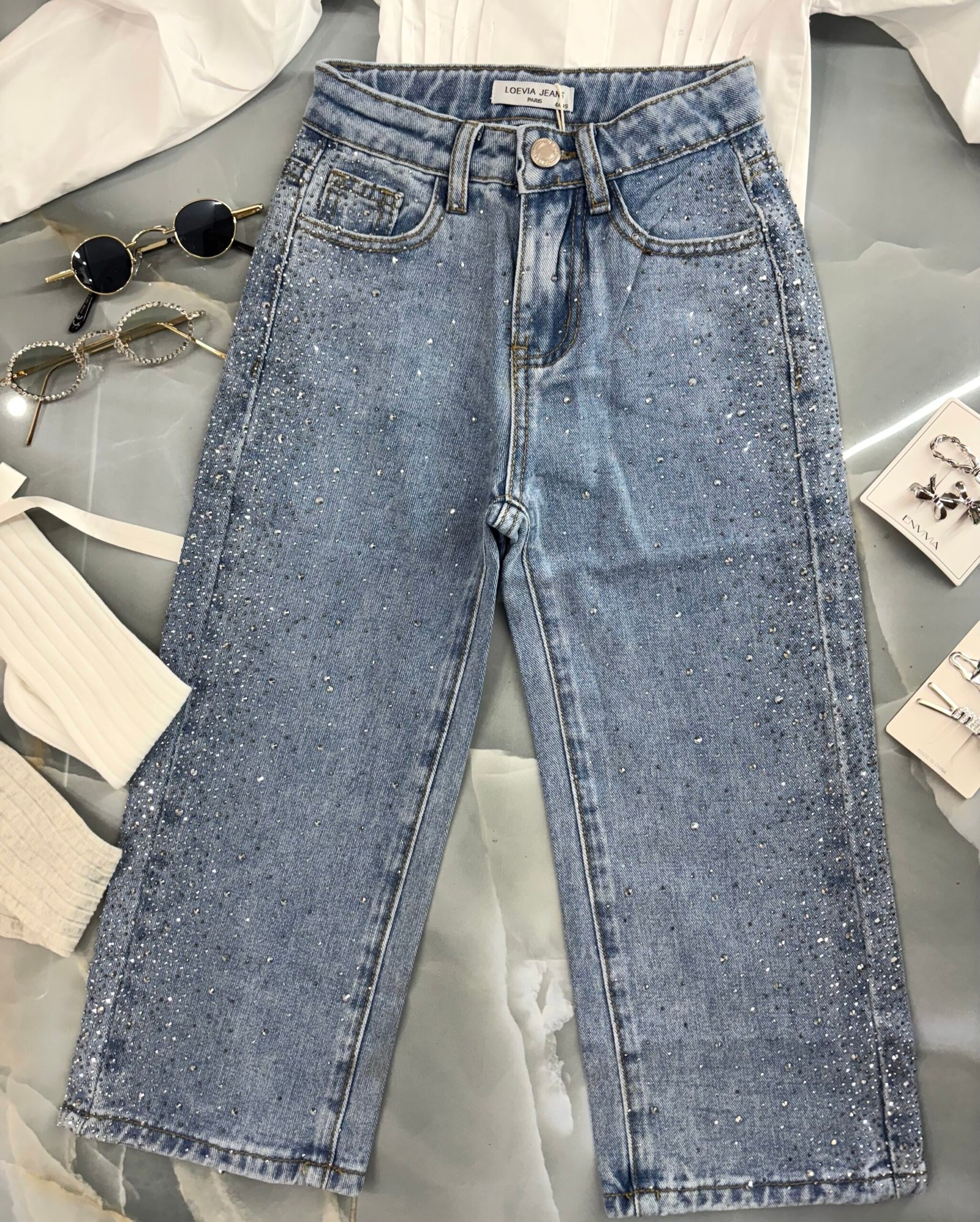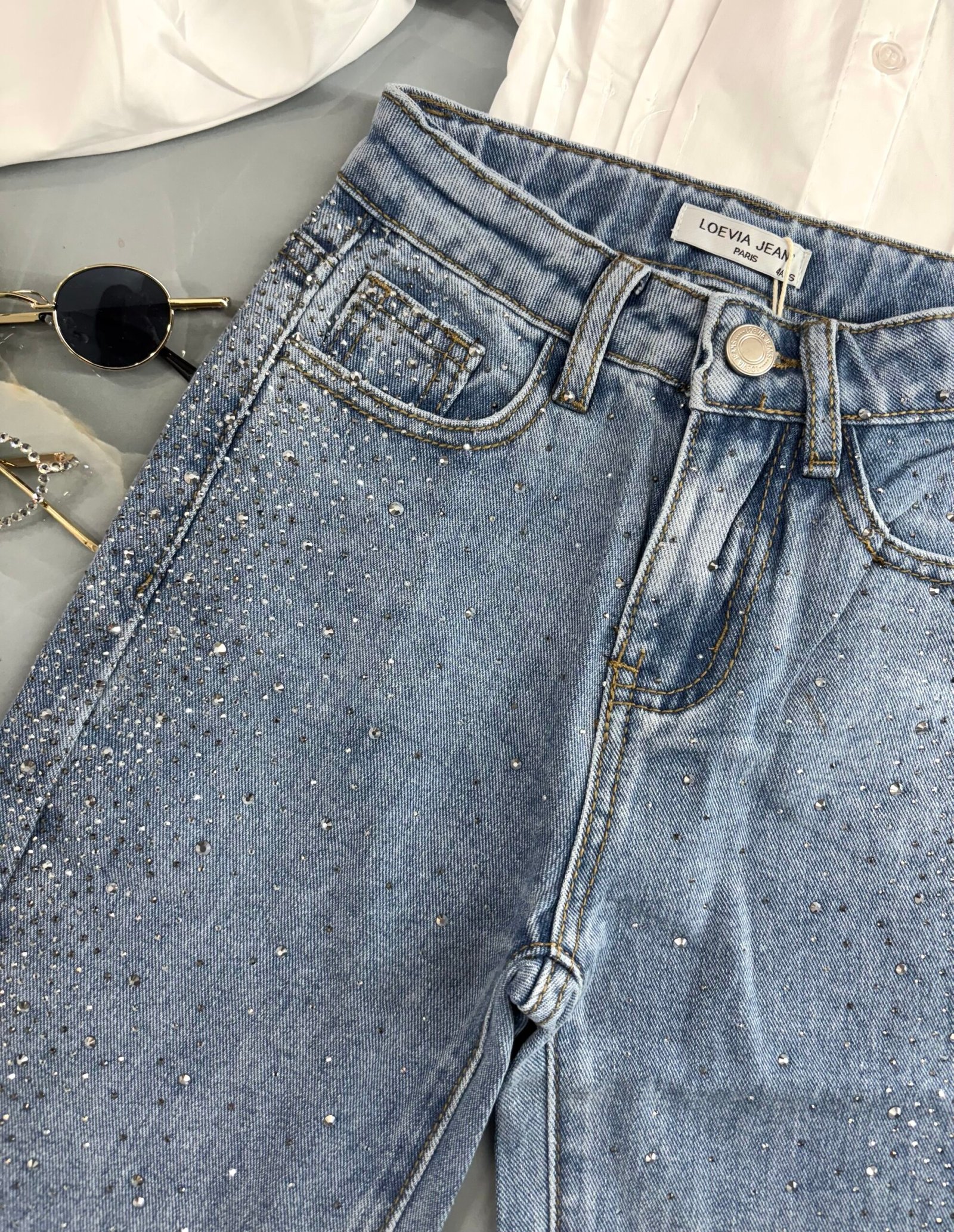 Jeans chiaro tempestato di brillantini