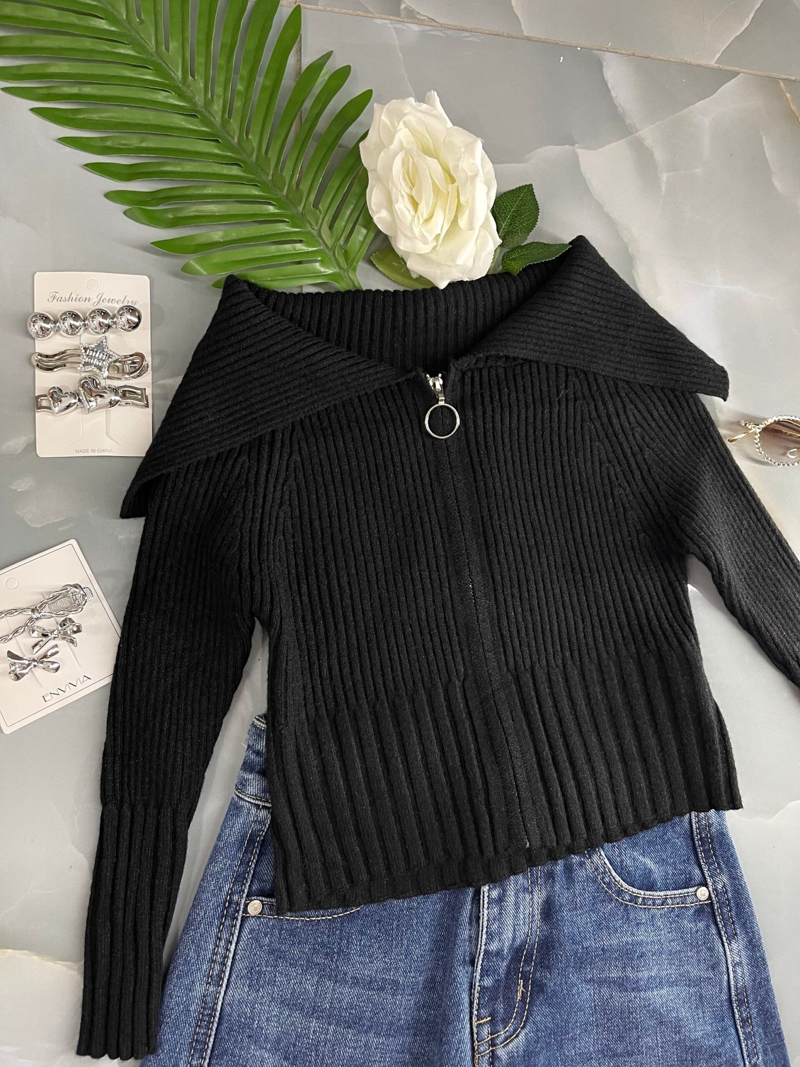 Maglia in lana con scollo e zip