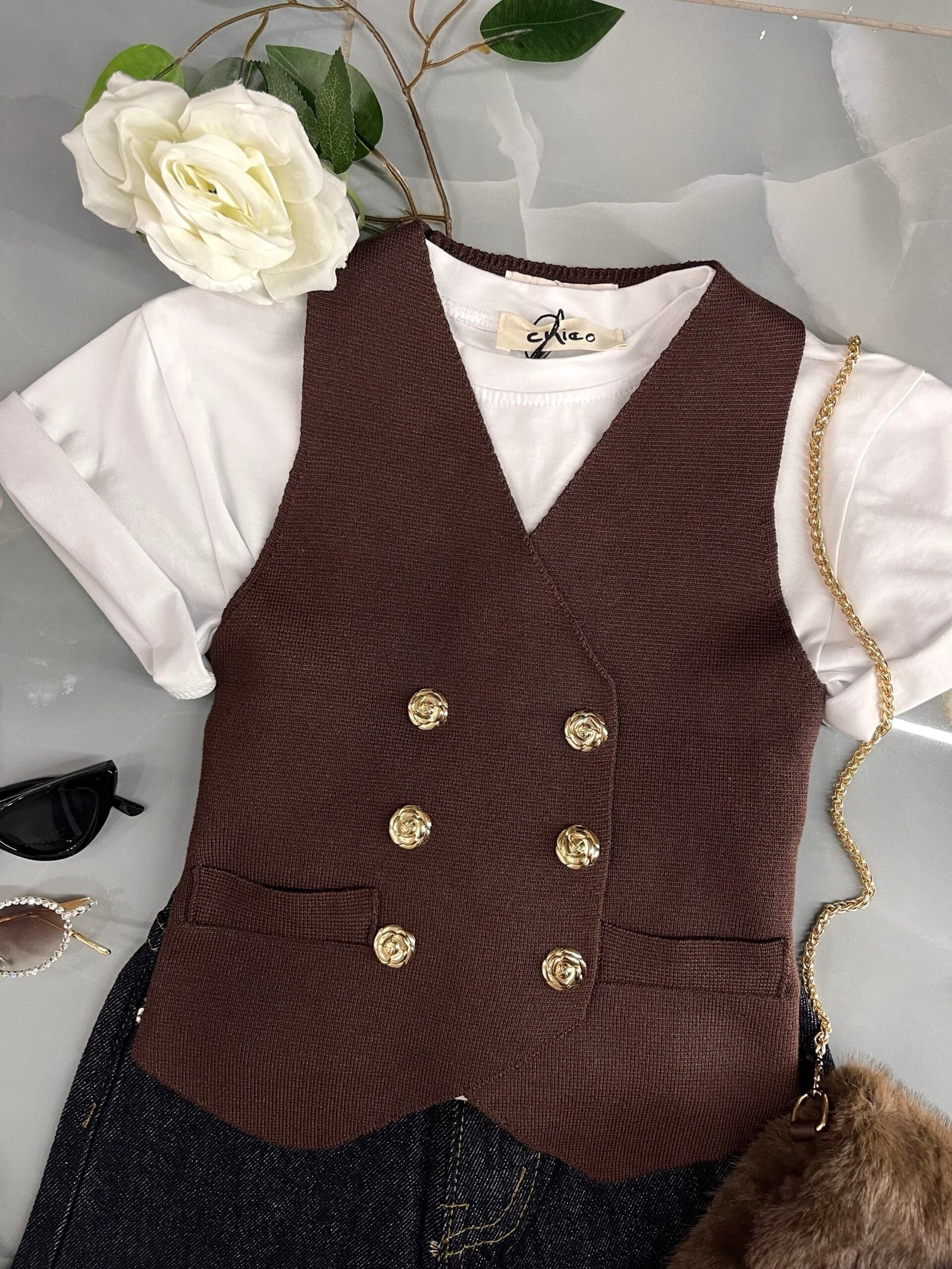 Panciotto in tessuto con bottoni oro