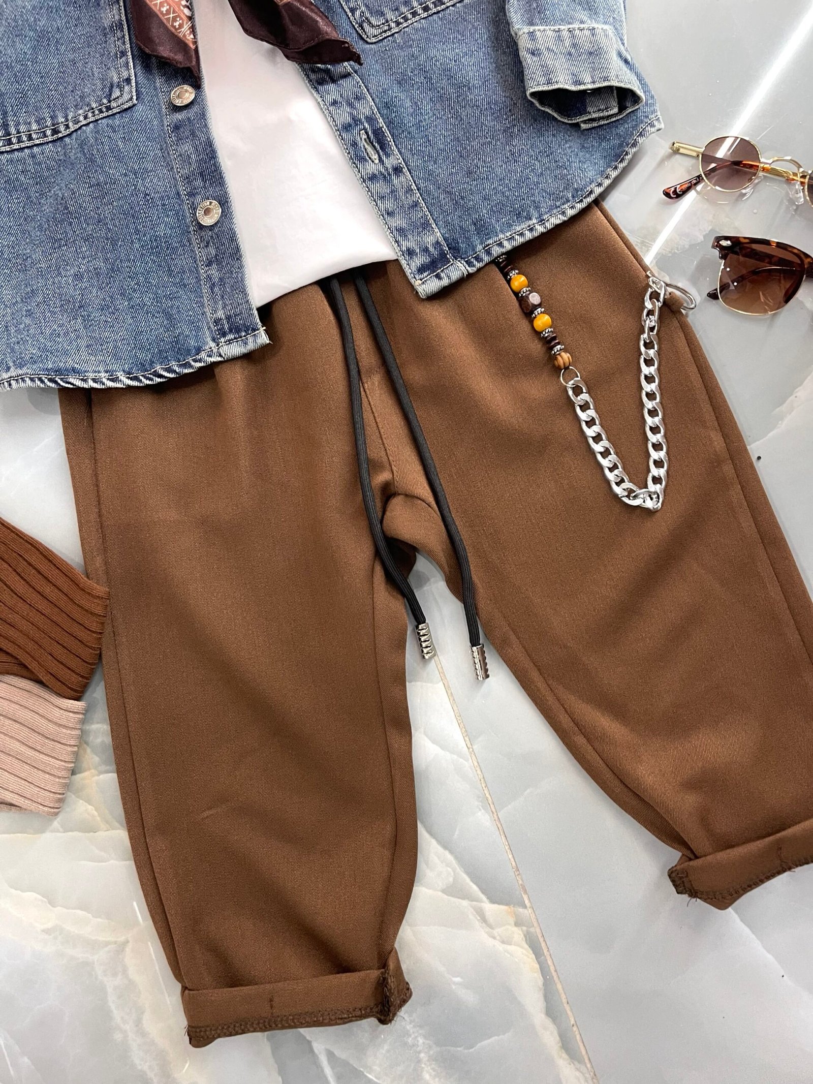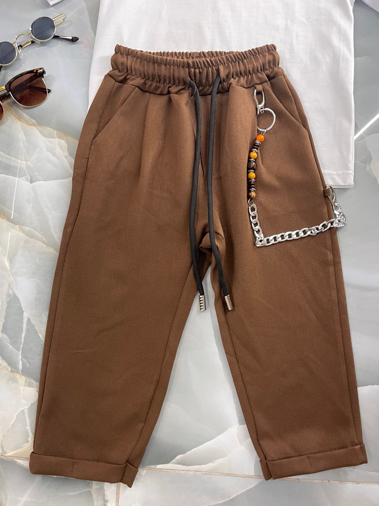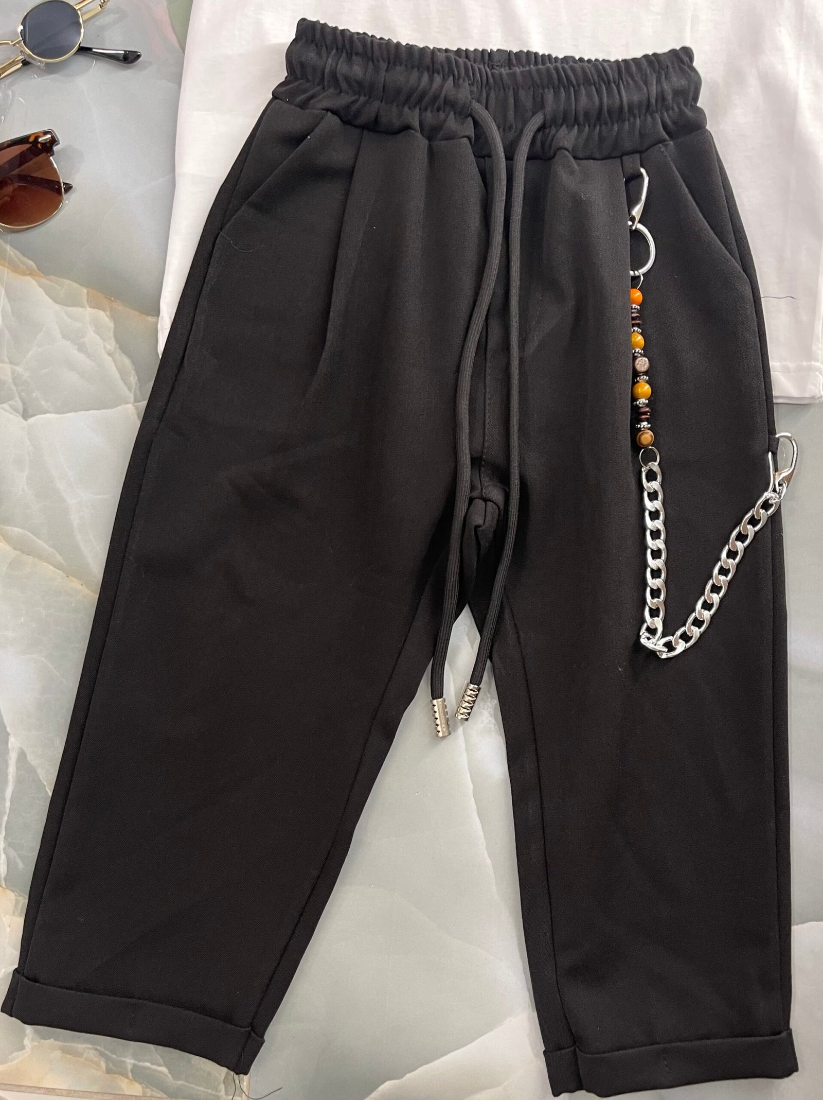 Pantalone classico tessuto invernale con elastico in vita e catena laterale