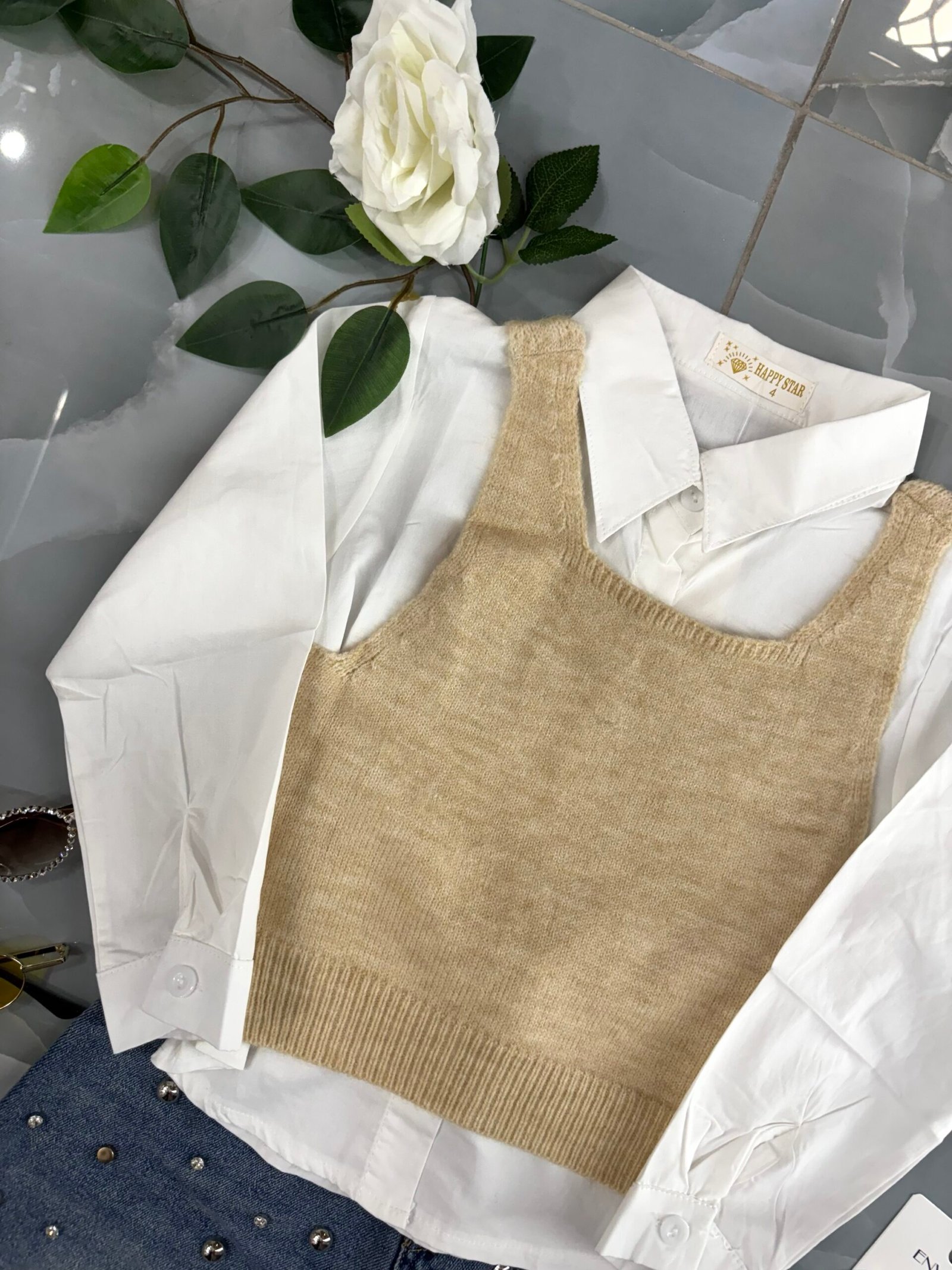 Camicia in cotone +gilet REMOVIBILE in lana